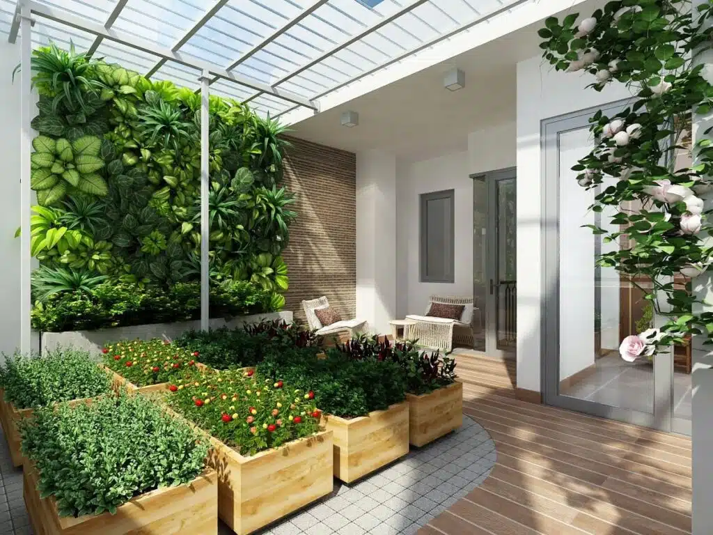 Tạo cảnh quan: đây có thể xem là 1 “thú chơi” mới của những người yêu nét đẹp. Cây xanh có khả năng làm đẹp cho kiến trúc và tạo ra không gian sống thân thiện. Cây xanh và vườn hoa có thể được sử dụng để tạo cảnh quan xung quanh các tòa nhà và công trình kiến trúc. Điều này không chỉ tạo điểm nhấn mỹ thuật mà còn mang lại cảm giác bình yên và thoải mái cho môi trường sống.