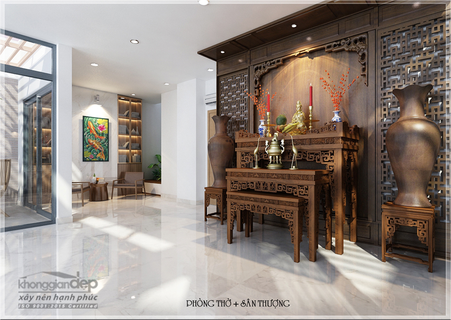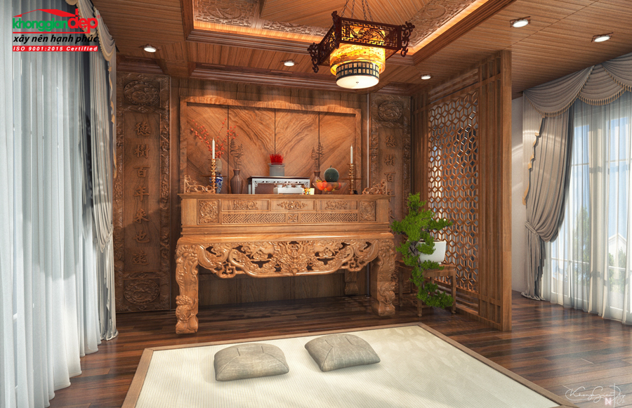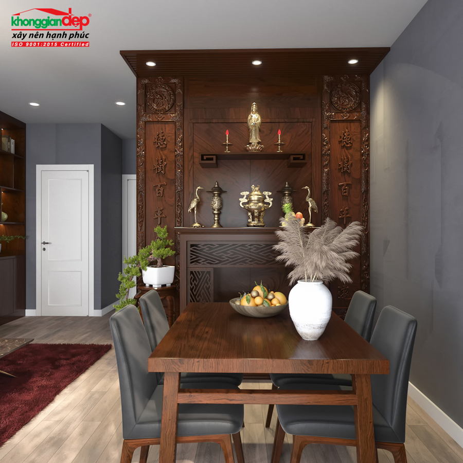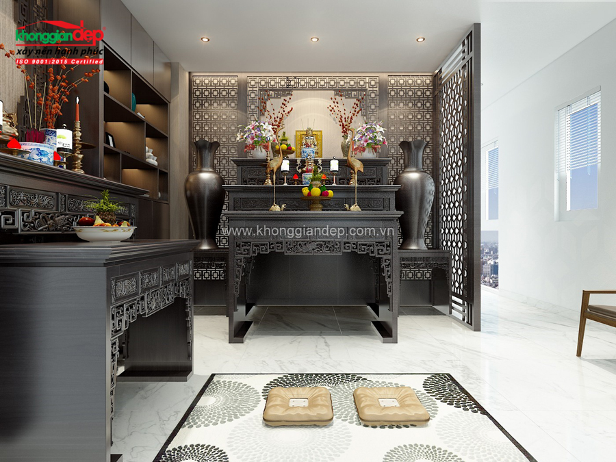 Trong tâm linh của mỗi người Việt Nam ta, phòng thờ luôn có một vị trí linh thiêng và quan trọng nhất trong ngôi nhà. Không chỉ là nơi thể hiện văn hoá tín ngưỡng, đây còn là nơi con cháu bày tỏ lòng hiếu thảo với ông bà tổ tiên, tưởng nhớ và bày tỏ lòng biết ơn đến các thế hệ trước của gia đinh. Chính vì thế, lựa chọn và thiết kế không gian thờ cúng trong mỗi gia đình luôn được chú trọng và cẩn thận, từ vật liệu cho đến cách bài trí đều được lưu tâm một cách tuyệt đối.